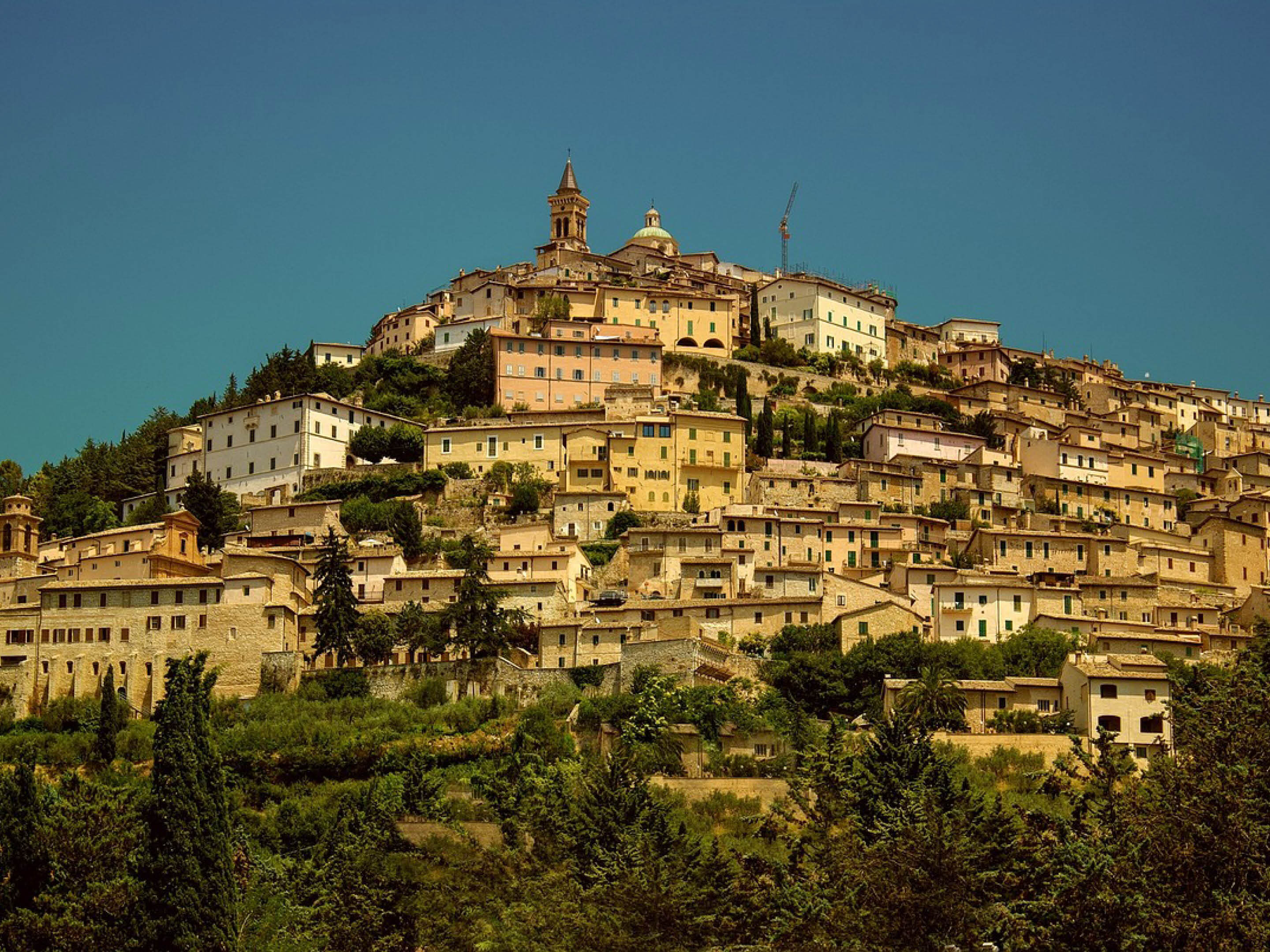 Vi bor rett ved byen Trevi, en sjarmerende liten by med trange, brosteinsbelagte gater, gamle steinhus og autentisk italiensk atmosfære, omkranset av olivenlunder og grønne åser.